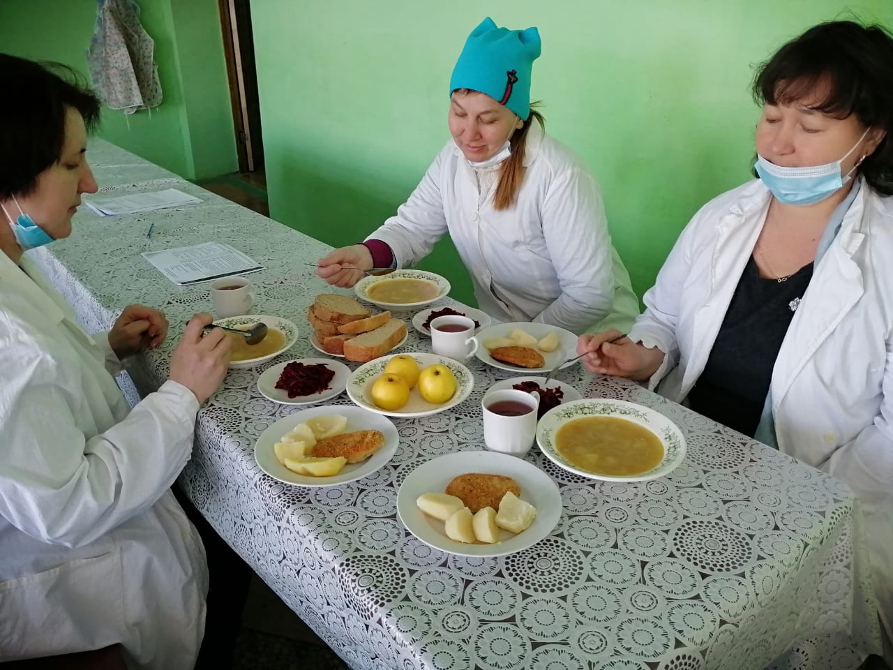 Родители посмотрели пищеблок,изучили организацию питания. Потом за обеденным столом родители попробовали горячий обед, который получают дети.